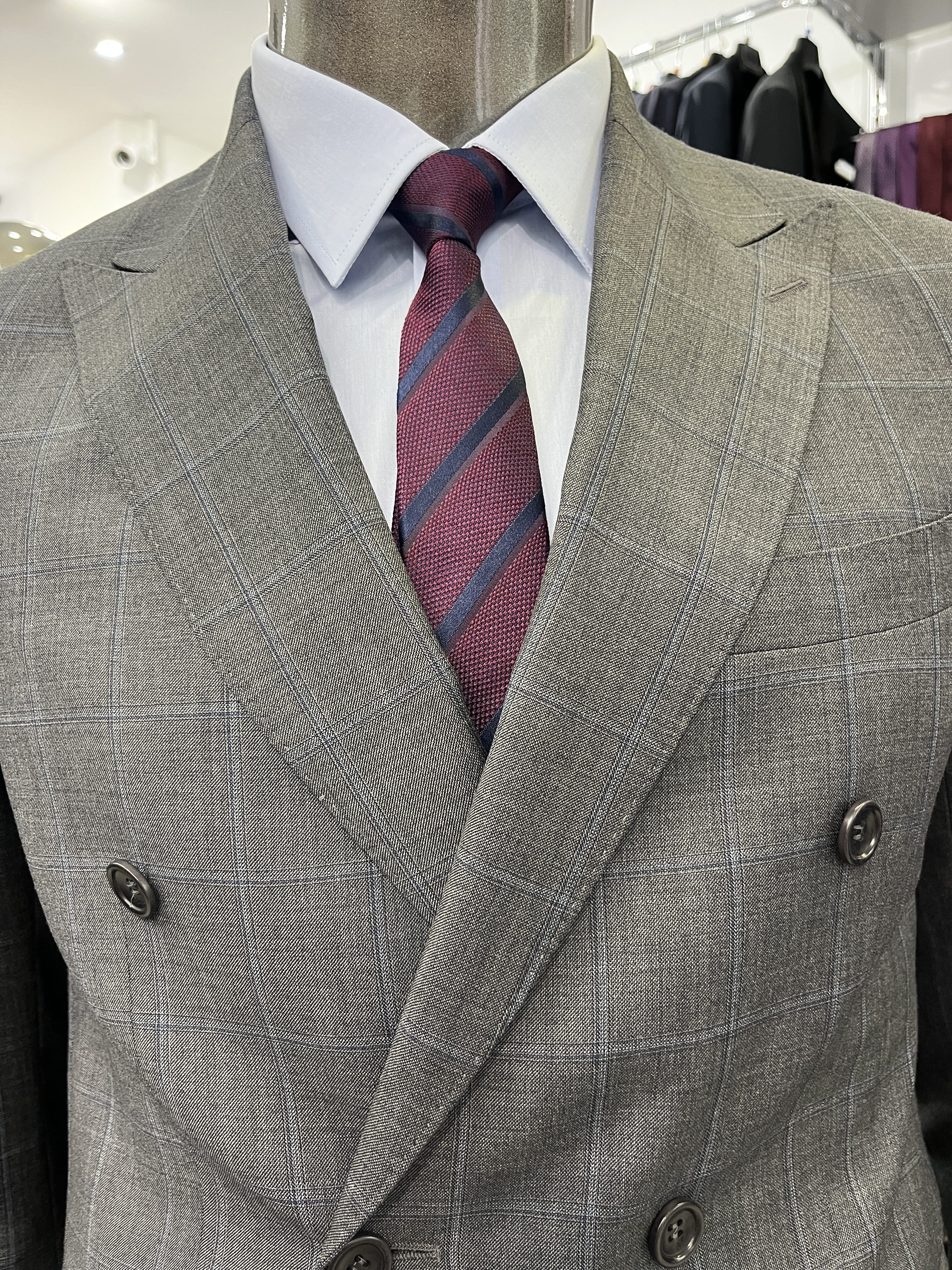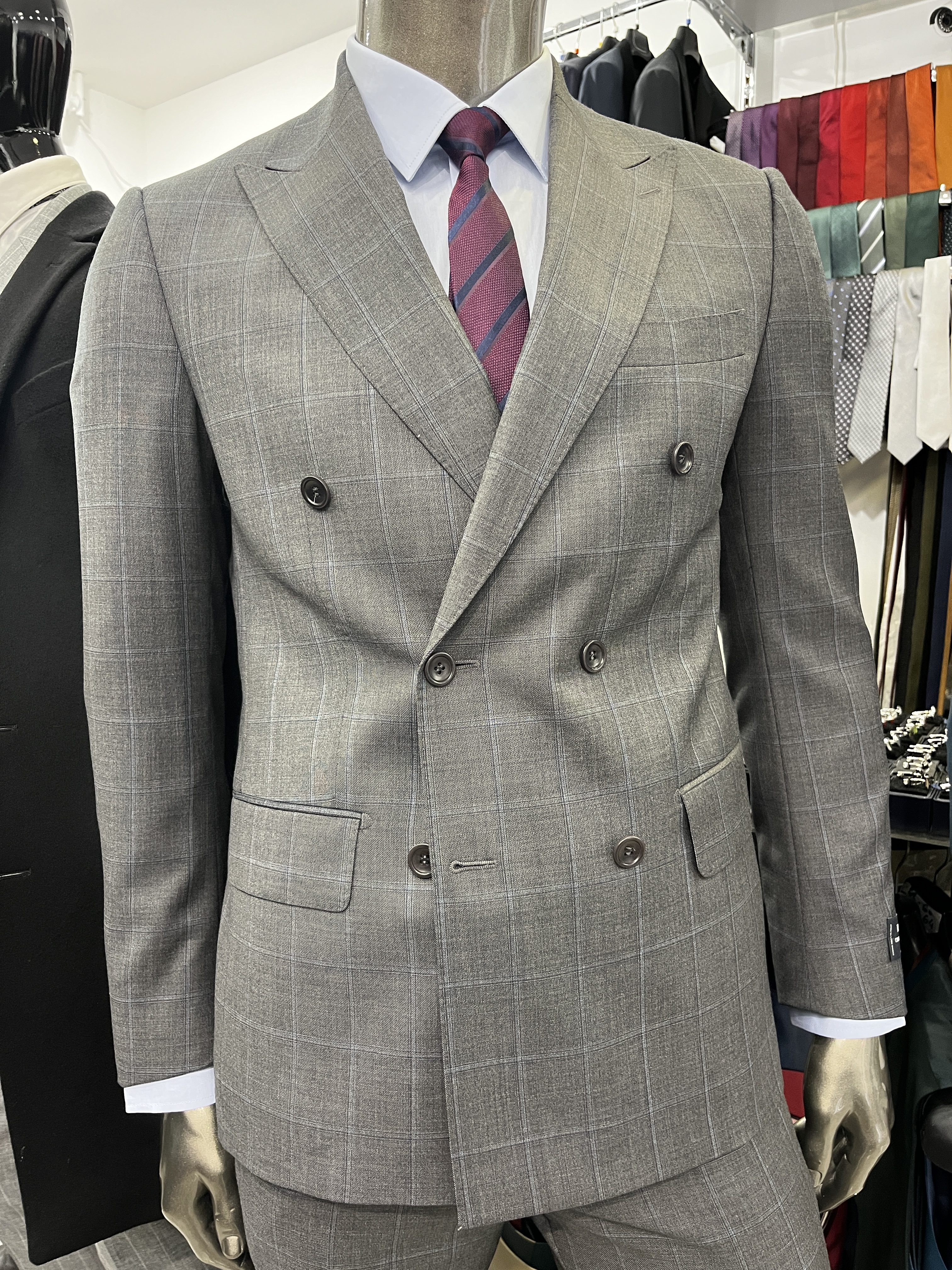 Costume croisé gris a carreaux bleu - image  on https://gianniferrucci-tlse.fr