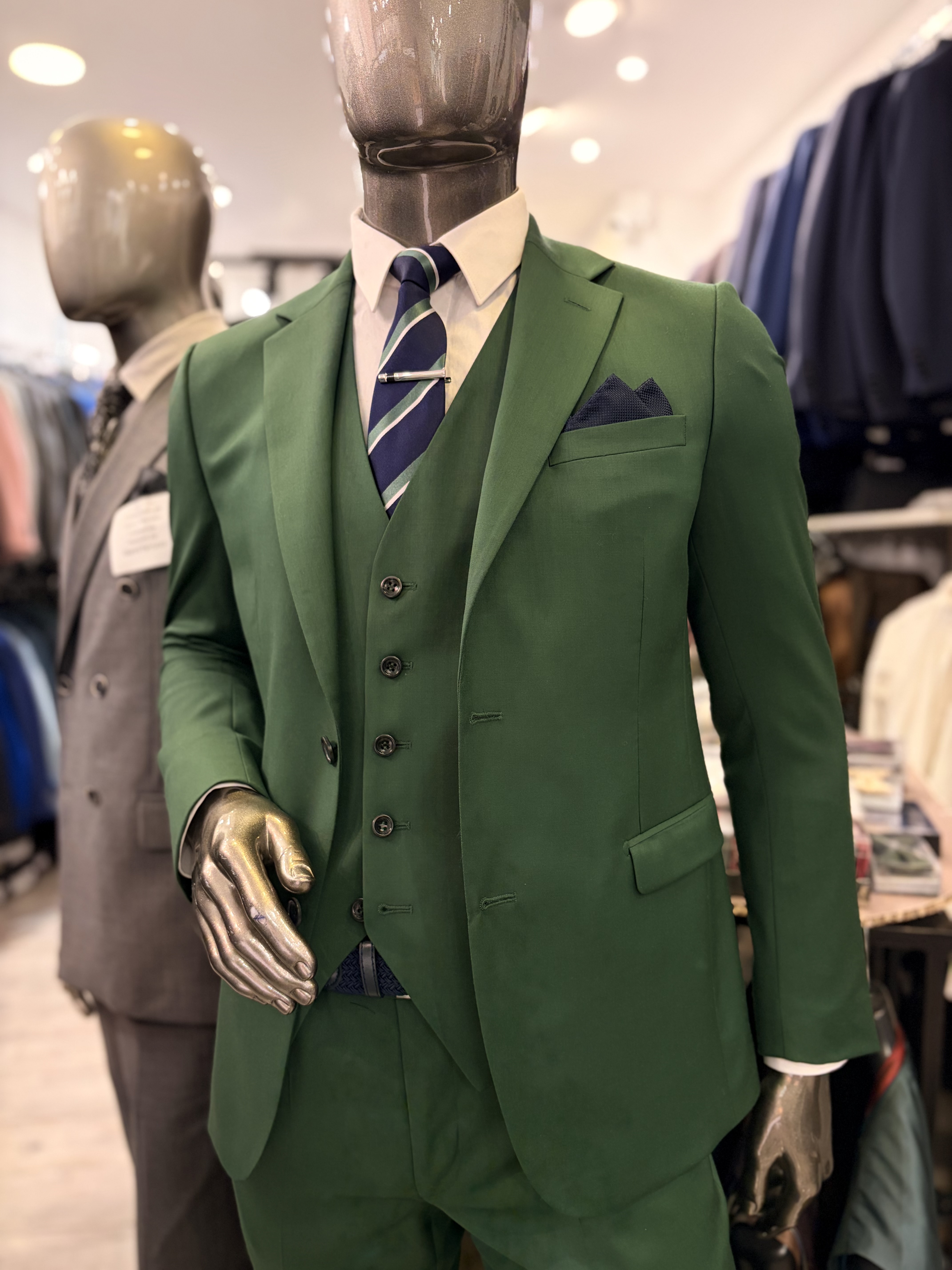 Le costume trois-pièces vert.