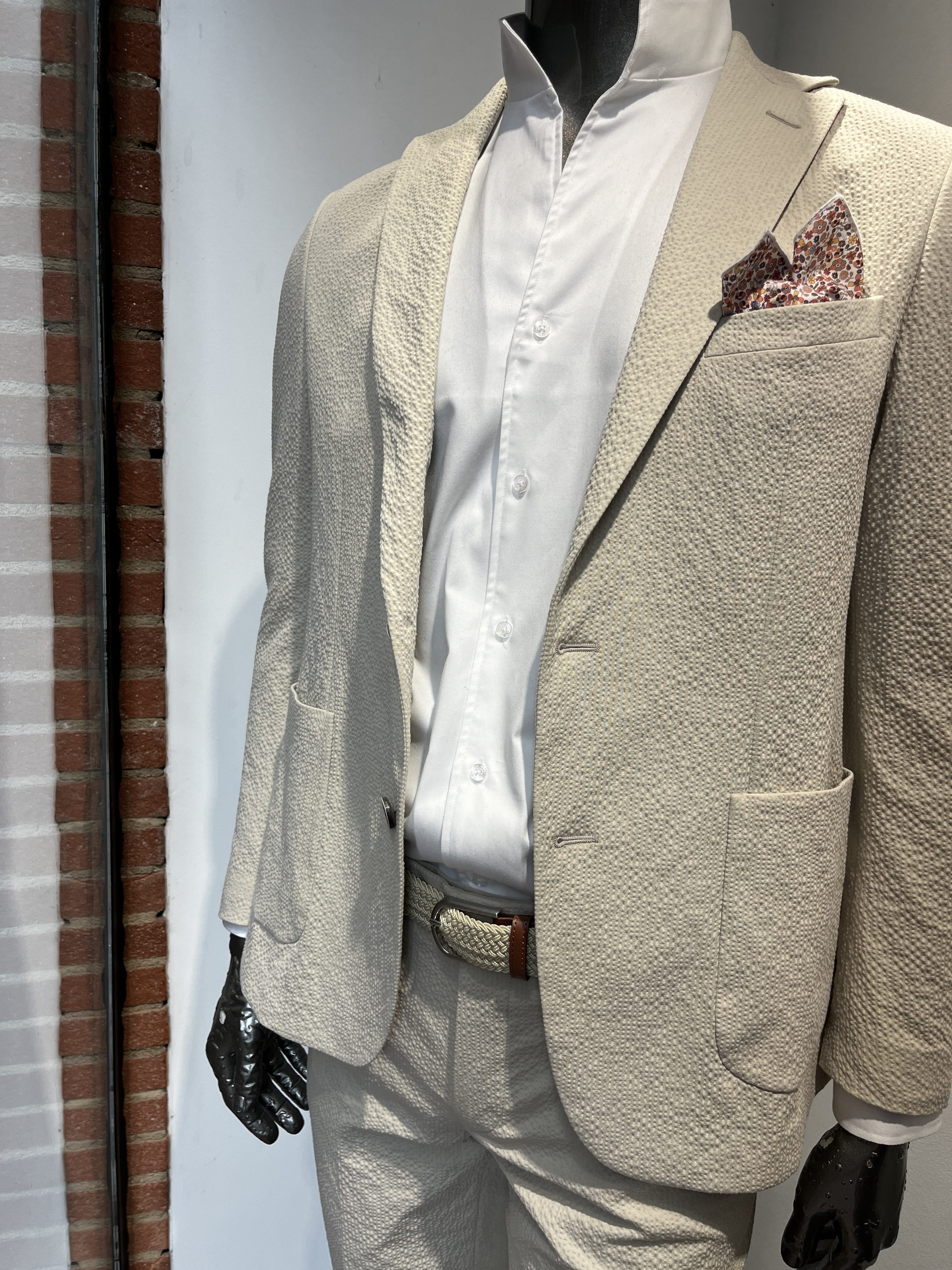 Venez découvrir l’équilibre parfait entre style et confort avec cet ensemble veste et pantalon en coton.